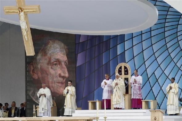 Die Seligsprechung selbst war wenig spektakulär. In ein Pontifikalamt eingebettet wurde zu Beginn der Akt in stimmungsvoller Nüchternheit vollzogen: Als der Papst „den ehrwürdigen Diener Gottes John Henry Cardinal Newman als selig" erklärte und sein Bild – es war das Portrait aus dem Trinity-College in Oxford – auf dem Bildschirm erschien, brandete Beifall aus.